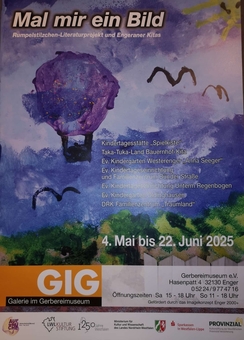 Mal mir ein Bild![]() Wenn man Kindergartenkindern eine Geschichte vorliest und sie bittet zur Geschichte Bilder zu malen, passiert etwas Wundervolles. Die fantastischen Kunstwerke sind noch bis zum 22. Juni im Gerbereimuseum, Hasenpatt 4 in Enger zu besichtigen und natürlich die dazugehörigen Geschichten auch. Öfnnungszeiten: Sa.: 15:00 - 18:00 Uhr und So.: 11:00 - 18:00 Uhr Mehr lesen ... |